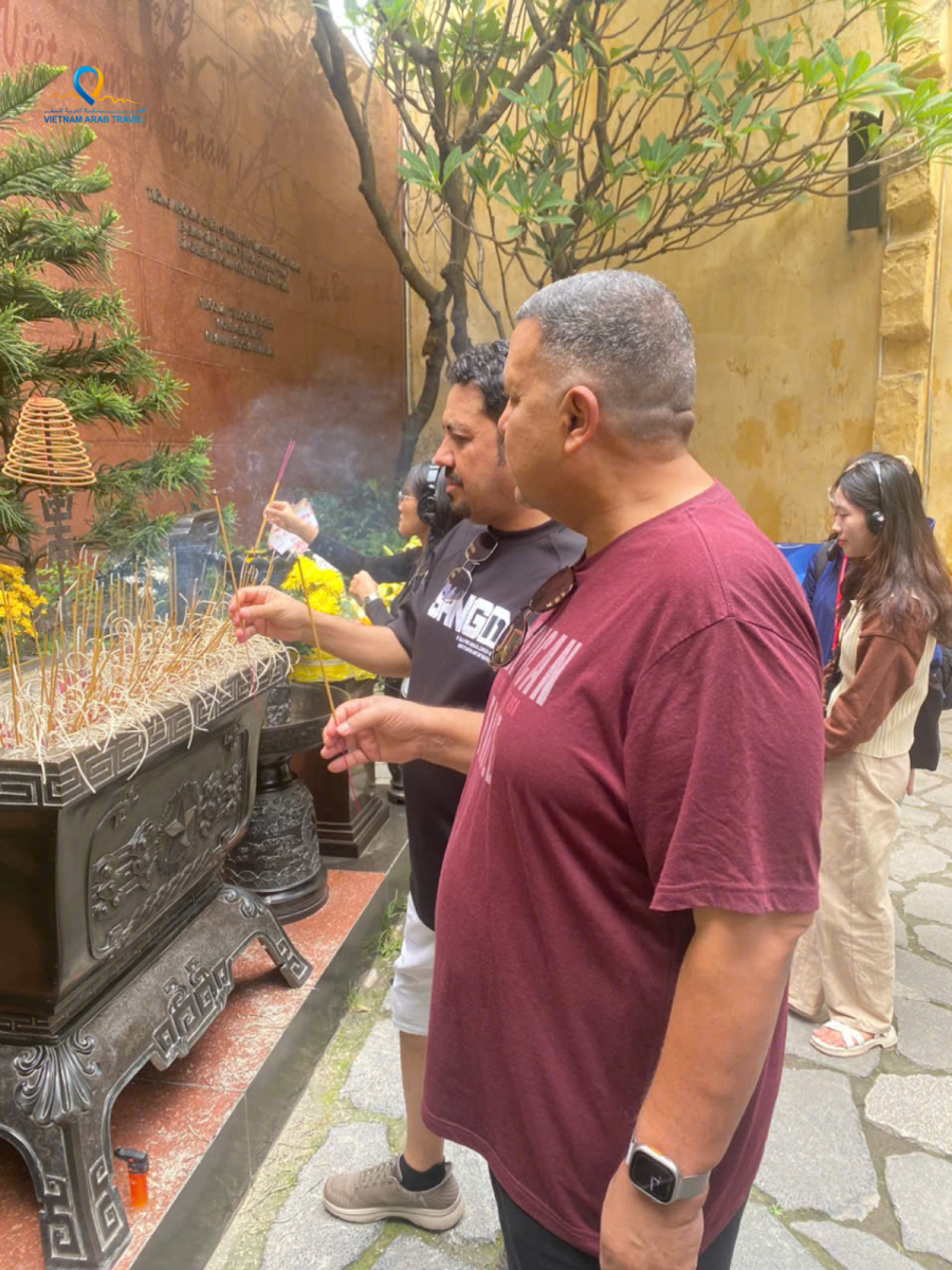 في ظل الأشجار القديمة وبين الألواح الحجرية التي تحمل أسماء العلماء البارزين عبر العصور، شعروا بجو من الفخر الثقافي وأعجبوا بالتقاليد التعليمية العريقة للشعب الفيتنامي.