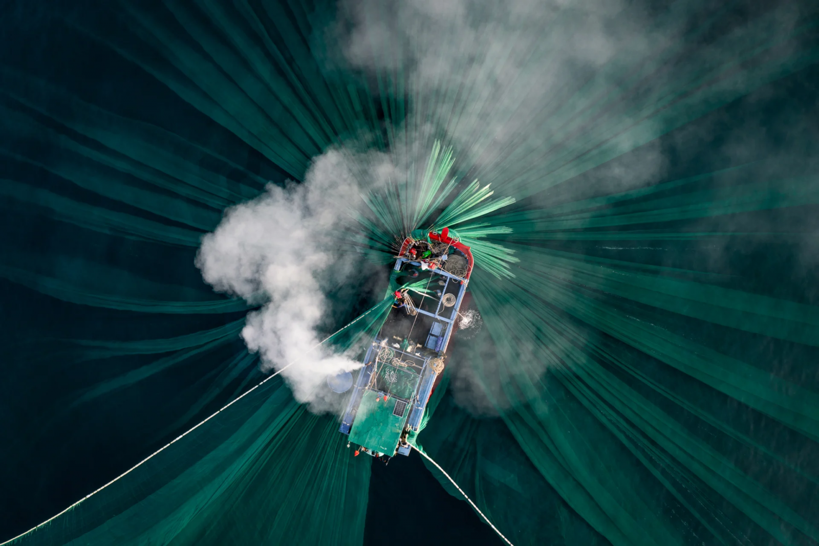 وأشار نغوك إلى أنه تمكّن من التقاط هذه الصورة تحديدًا، بعدما تعرّض القارب لحادث صغير، موضحًا: "كانت (الصورة) في الواقع توثّق حادثًا وقع خلال سحب الشبكة، وعندما تم تحميل محرك القارب بشكلٍ زائد، نتج عن ذلك انبعاث الكثير من الدخان في الهواء".