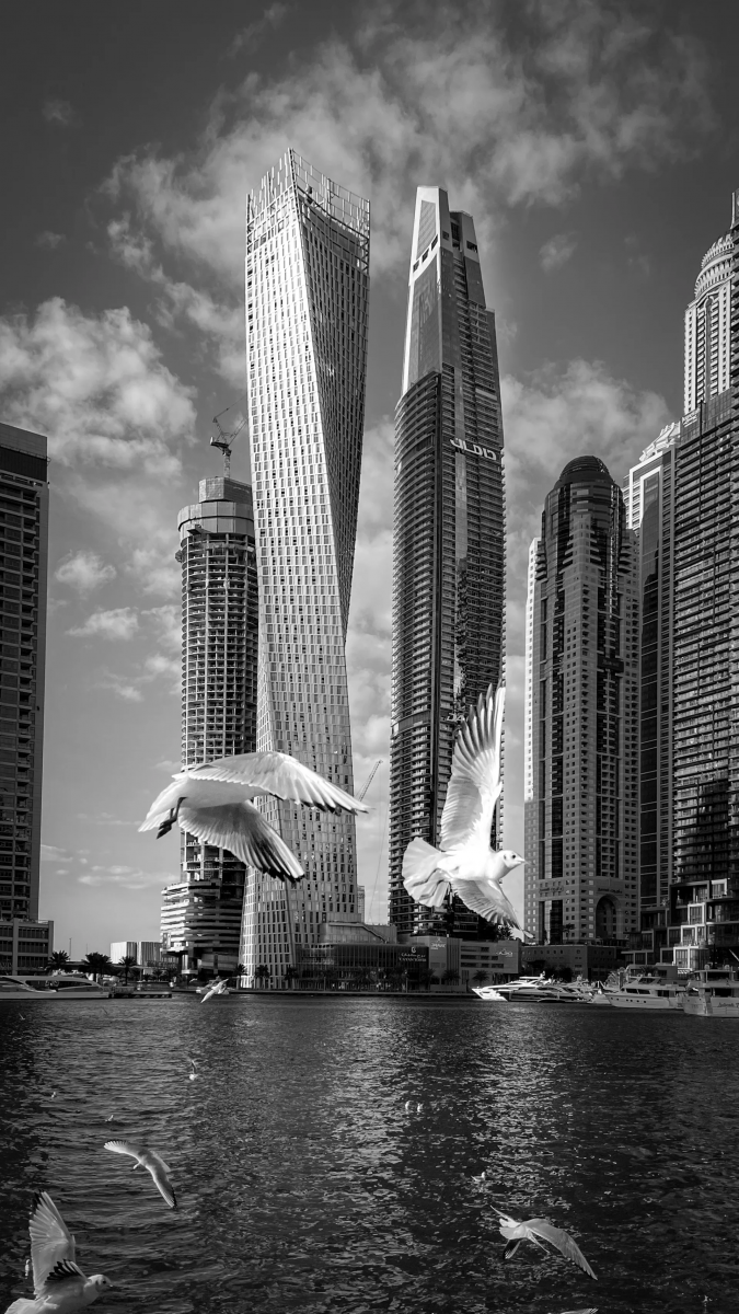 وصادف الناجي مجموعة من الطيور أثناء تجوله بالقرب من منزله، في منطقة مرسى دبي، ما دفعه إلى إبراز جمال المنظر، حتى يستطيع أن يضيف الحياة إلى المشهد العمراني بدبي.