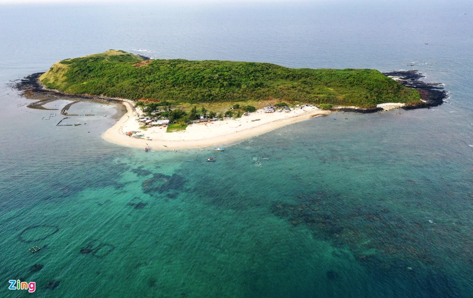 Bãi cát trắng trải dài hàng trăm mét quanh hòn đảo là địa điểm thích hợp cho du khách trải nghiệm tắm biển hay cắm trại qua đêm trên đảo.
