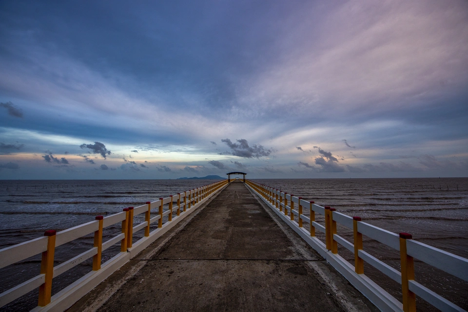 Bãi biển Khai Long có một cầu cảng bê tông dài hàng chục mét bắt từ bờ ra hướng biển. Đây trở thành chiếc cầu tham quan du lịch biển vô vùng thú vị. Tại đây, du khách sẽ có cơ hội được ngắm mặt trời mọc và lặn trên mặt biển. Để ngắm bình minh, du khách cần dậy sớm, rảo bước trên bãi cát mịn hoặc đi dạo trên con đường bê tông uốn quanh bờ biển.